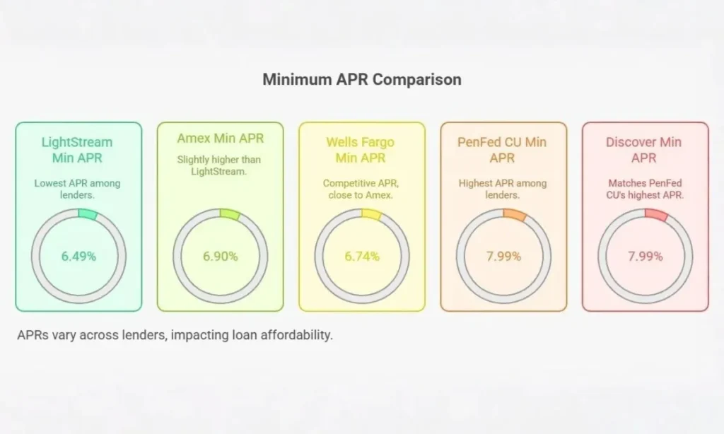 | American Express | 6.90%–19.99% | $3,500–$50,000 | 12–60 mo | No origination / no prepay |